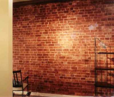 Wall painted to simulate old brick
